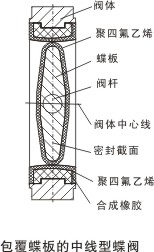 3、包覆(fu)蝶闆(pan)的中(zhong)線型(xing)蝶閥(fa)。其密(mi)封副(fu)結構(gou)如下(xia):