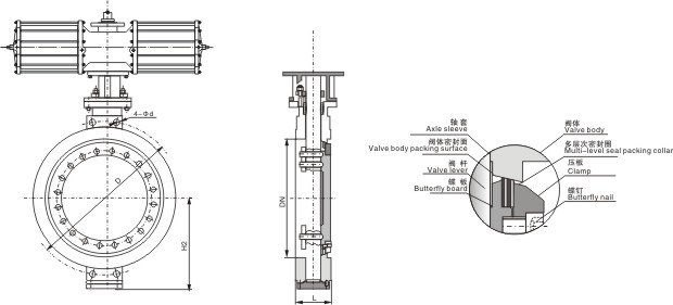 主要(yao)外形和(he)連接連(lian)接尺寸(cun)(對夾式(shi))