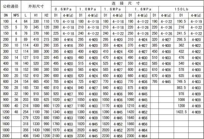主要(yao)外形和(he)連接連(lian)接尺寸(cun)(對夾式(shi))